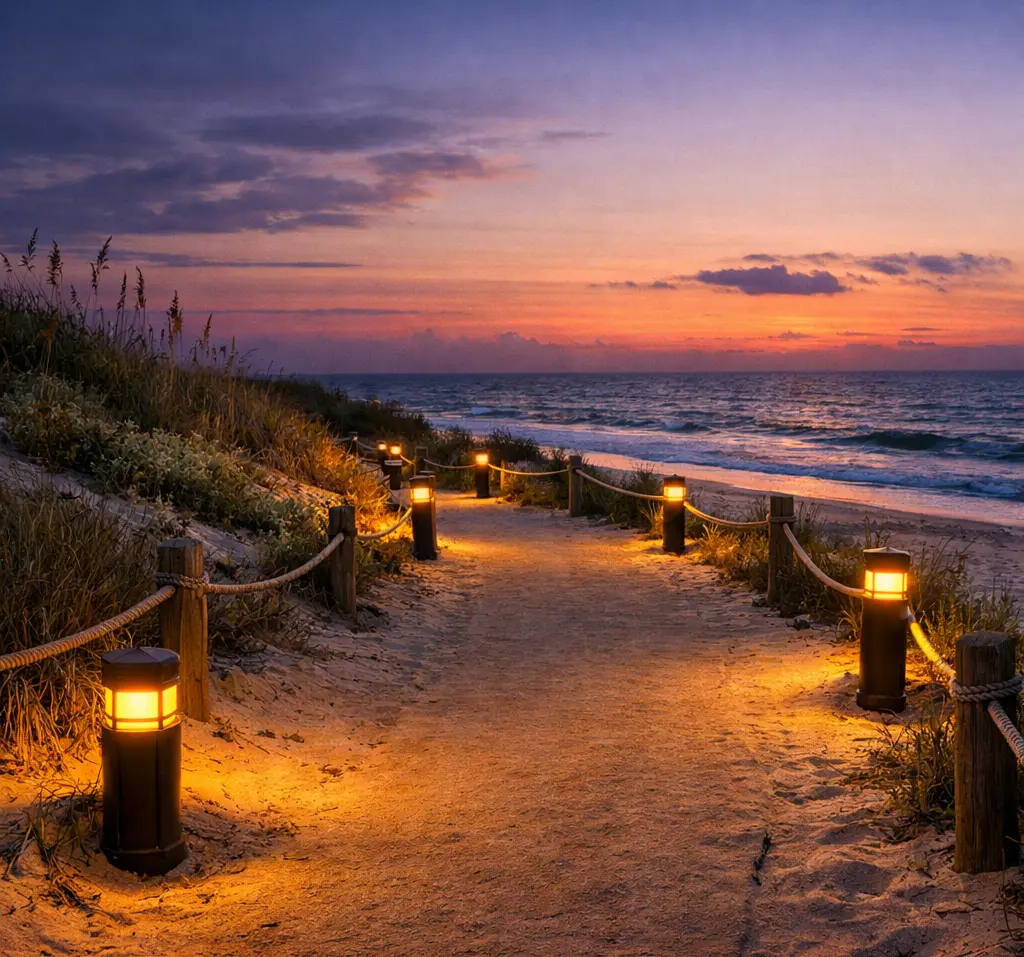 Public beach access points and coastal walkways frequently require lighting for safety while minimizing ecological impact.